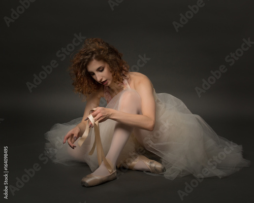 © William, Fototapeta premium Ballerina tying shoes