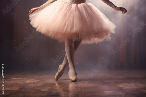 Naklejka premium Ballet dancer's feet in delicate pointe shoes.