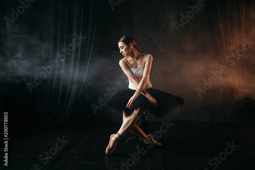 © Nomad_Soul, Fototapeta premium Ballet dancer sitting on black banquette