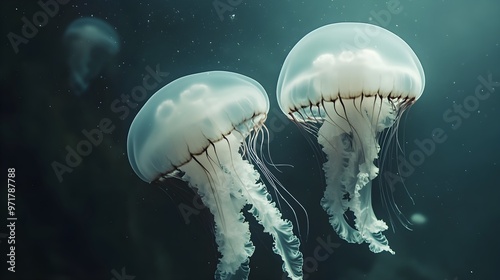 © Bijali, Fototapeta premium Ballet dancing white jellyfish floating on white background picture