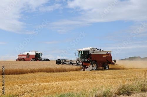 © ChristopheB, Fototapeta premium ballet de moissoneuses dans un champ en été