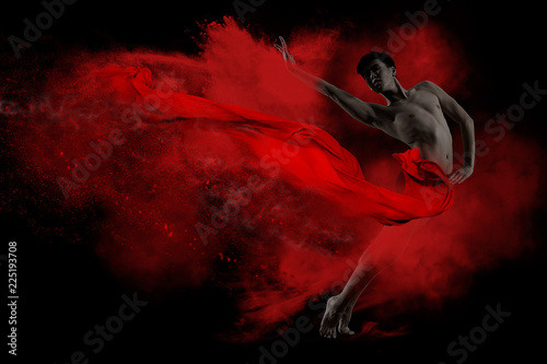 © Andrey Burmakin, Naklejka premium Ballet man. Dance black and red concept