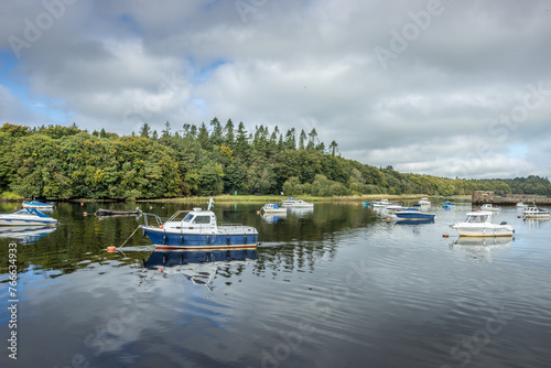© Jakub, Fototapeta premium Ballina, Ireland - September 4 2023 "Boats in River Moy in Ballina, north west Ireland"
