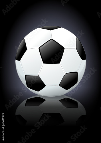 © Onidji, Obraz premium Ballon de football sur fond noir (reflet)
