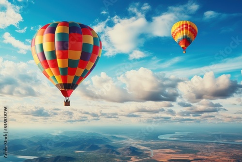 Obraz premium Balloon flight. Beautiful background, travel theme. Generative AI.
