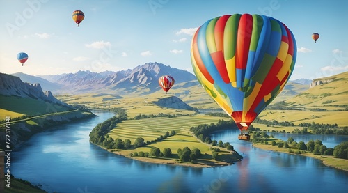 Fototapeta premium Balloon flight Hot air balloon flight blue sky