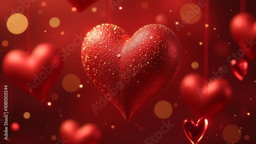 © Olga, Fototapeta premium Balloon heart. Set of shiny red balloons