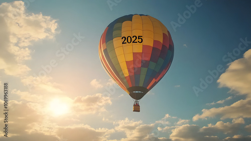 Fototapeta premium 2025 Balloon of Dreams A colorful hot air balloon