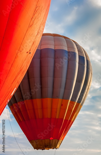 © Александр Коликов, Obraz premium Balloon on the background of blue sky with white clouds in summer