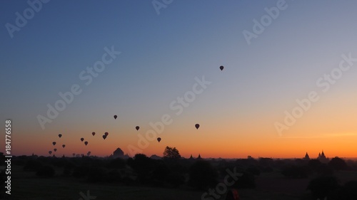 Obraz premium balloon over plain of Bagan in misty morning, Mandalay, Myanmar