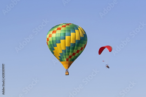 Naklejka premium Balloon ride with hang glider