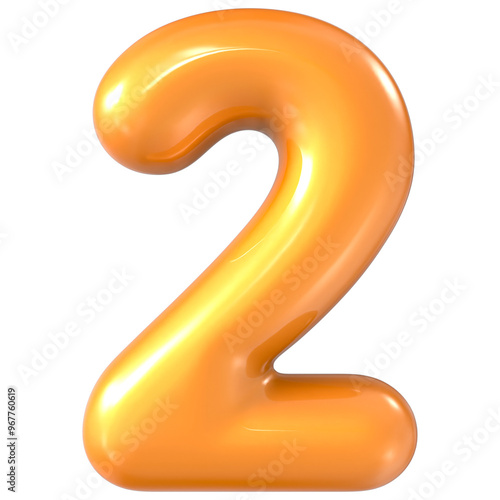 Naklejka premium Balloon Yellow Number 2 3d Render