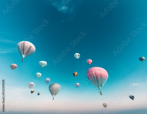 Naklejka premium balloons floating in clear blue sky, minimal