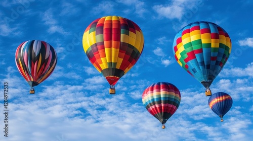 Fototapeta premium Balloons flying into the blue sky, symbolizing freedom and joyful celebrations