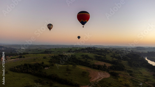 © Wagner Vilas, Naklejka premium balloons in the city of Piracicaba with a beautiful sunrise