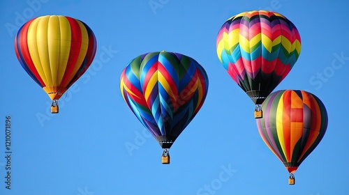 © Matcha_09, Fototapeta premium Balloons in vibrant colors floating freely against a clear blue sky.
