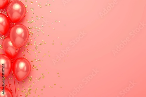 © Diffin, Fototapeta premium Balloons with confetti. Background template design with helium balloons for Party for Birthday and anniversary celebration, carnival. weddings and valentine's day and international women's day