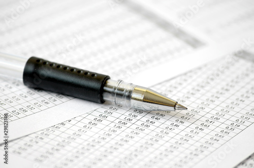 © Andrius Gruzdaitis, Fototapeta premium Ballpoint Pen on table with numbers
