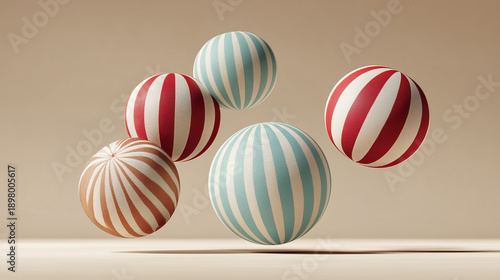 © MagicsPhotos, Obraz premium balls balanced in an impossible arrangement with subtle striped patterns and soft shadows