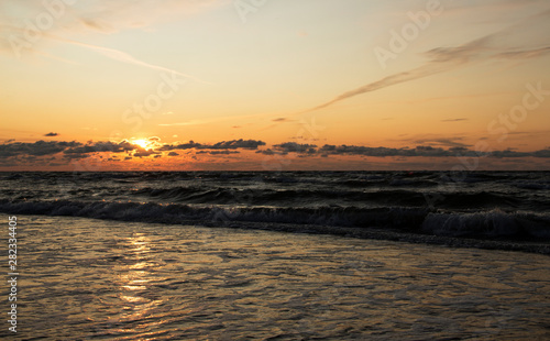 Obraz premium Baltic sea at sunset with waves