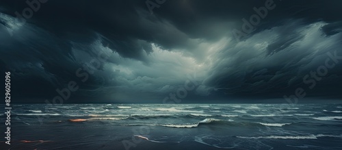 Naklejka premium Baltic Sea background with dark and dramatic storm clouds creating a captivating copy space image