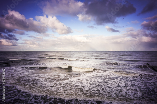 Obraz premium Baltic Sea waves, cloudy sky