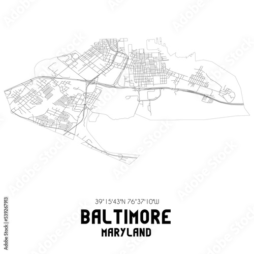 Fototapeta premium Baltimore Maryland. US street map with black and white lines.