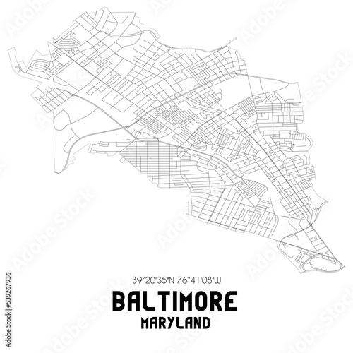 Fototapeta premium Baltimore Maryland. US street map with black and white lines.