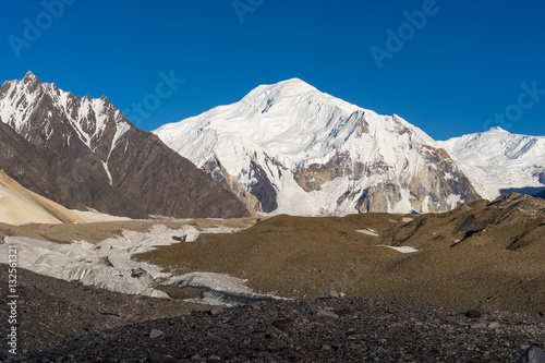 Obraz premium Baltoro Kangri mountain behind Baltoro glacier, Concordia camp,