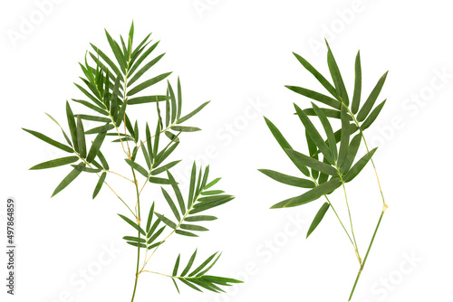 © wasanajai, Fototapeta premium Bamboo branch green leaves isolated on white background with clipping path.