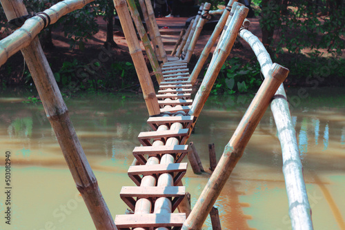 © Mahir, Fototapeta premium Bamboo bridge for crossing river pond in Bangladesh