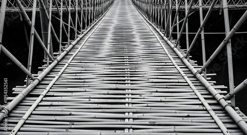 © Angel, Fototapeta premium Bamboo Bridge in Black and White, Perspective View