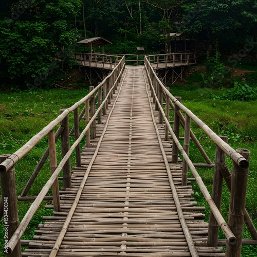 © OmRioRio, Fototapeta premium Bamboo Bridge in Forest