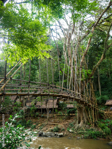 © Widiarso, Obraz premium Bamboo bridge in Gajeboh village, Outer Baduy Tribe, Banten, Indonesia, as a connecting bridge between Baduy tribe villages. This iconic and unique bridge is one of the cultural tourism destinations