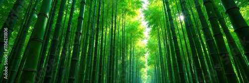 Fototapeta premium Bamboo forest in dense green wall vertical growth, dense, forest