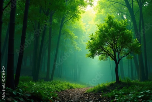 © chaiwat, Obraz premium Bamboo forest with a solitary tree in the foreground, solitude, forest, peaceful atmosphere