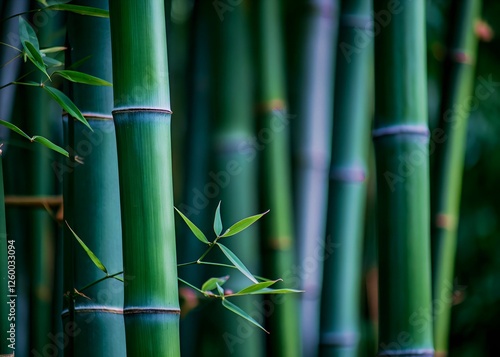 © Premium, Fototapeta premium Bamboo forest with green leaves and trunks