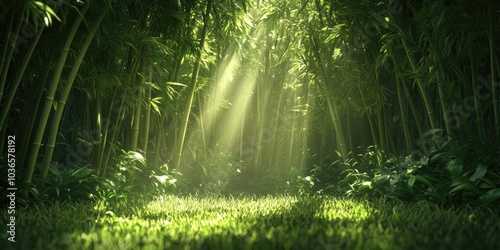 © VRVisionary, Obraz premium bamboo in a lush garden setting, lush garden with bamboo plants