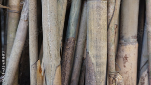 © LytaLyte, Fototapeta premium Bamboo in the wall of the old house, Indonesia. Background.