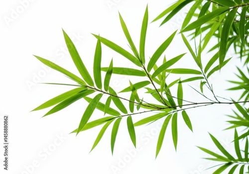 Fototapeta premium Bamboo leaves and branches against a bright white background creating a...