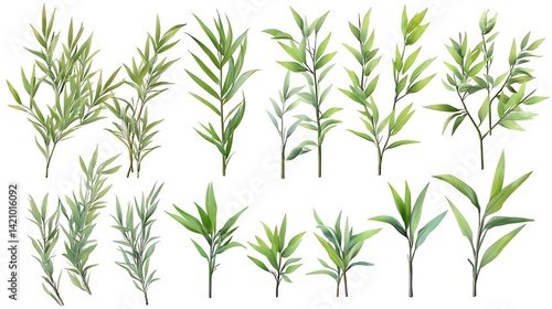© MDAFSHAR, Obraz premium Bamboo leaves isolated on white background with clipping path. Close up.