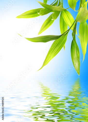 © Nejron Photo, Fototapeta premium Bamboo leaves reflected in rendered water