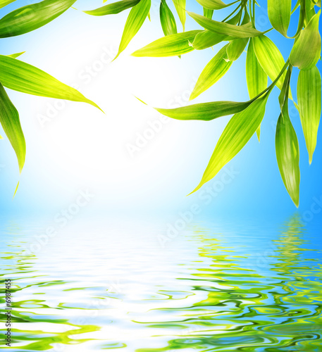 Fototapeta premium Bamboo leaves reflected in rendered water