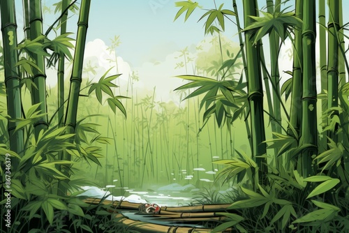 © Sidewaypics, Obraz premium Bamboo Material Structure Background - Generative AI