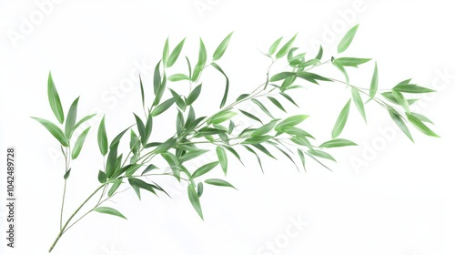 Obraz premium Bamboo plant with slender, curving leaves, isolated on white background