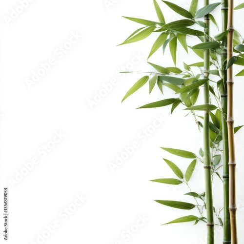 © logitech, Naklejka premium Bamboo stalks, green leaves, white background