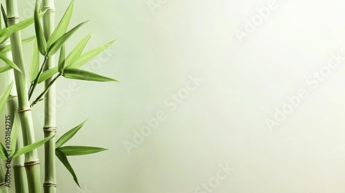 Fototapeta premium Bamboo stalks with lush green leaves against a soft, light green background, AI