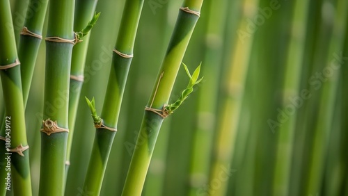 © Roovi, Fototapeta premium Bamboo stems on blurred green background, closeup