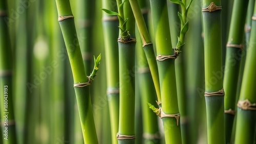 © Roovi, Fototapeta premium Bamboo stems on blurred green background, closeup