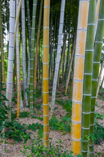 © Stramyk Igor, Fototapeta premium bamboo trunks in Bamboo Forest, Hiroshima, Japan.